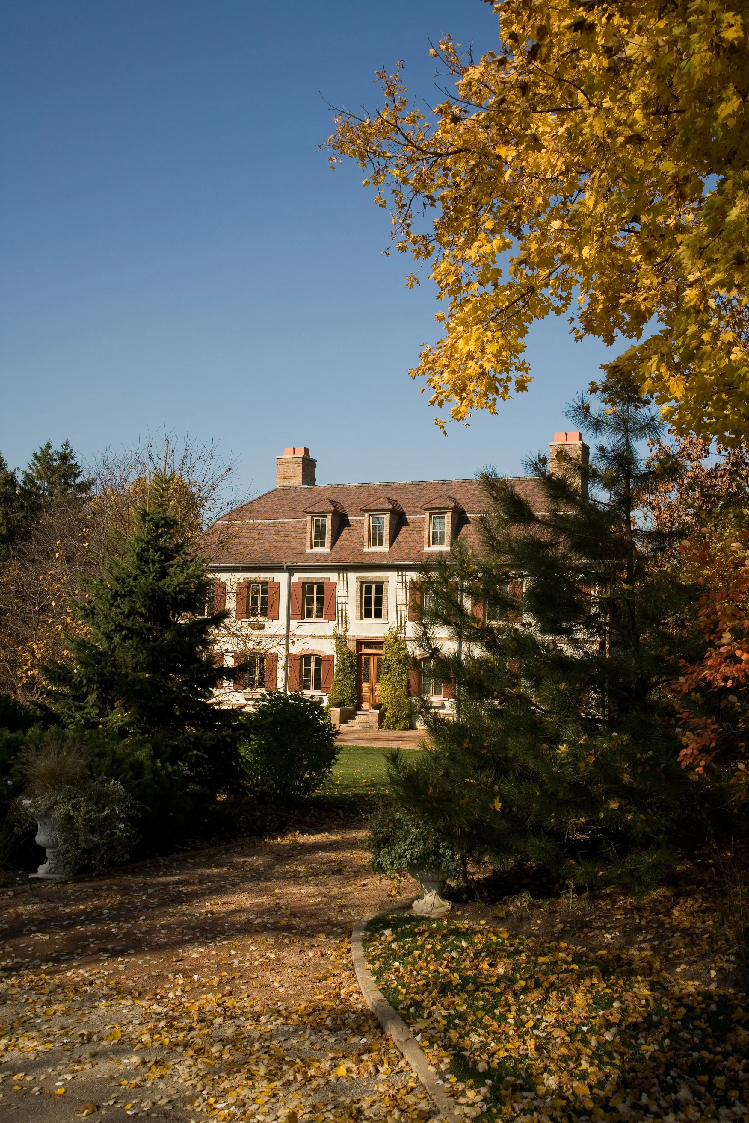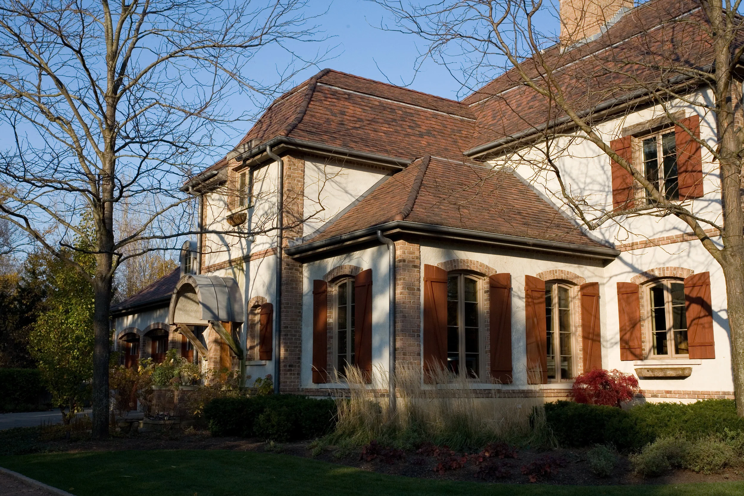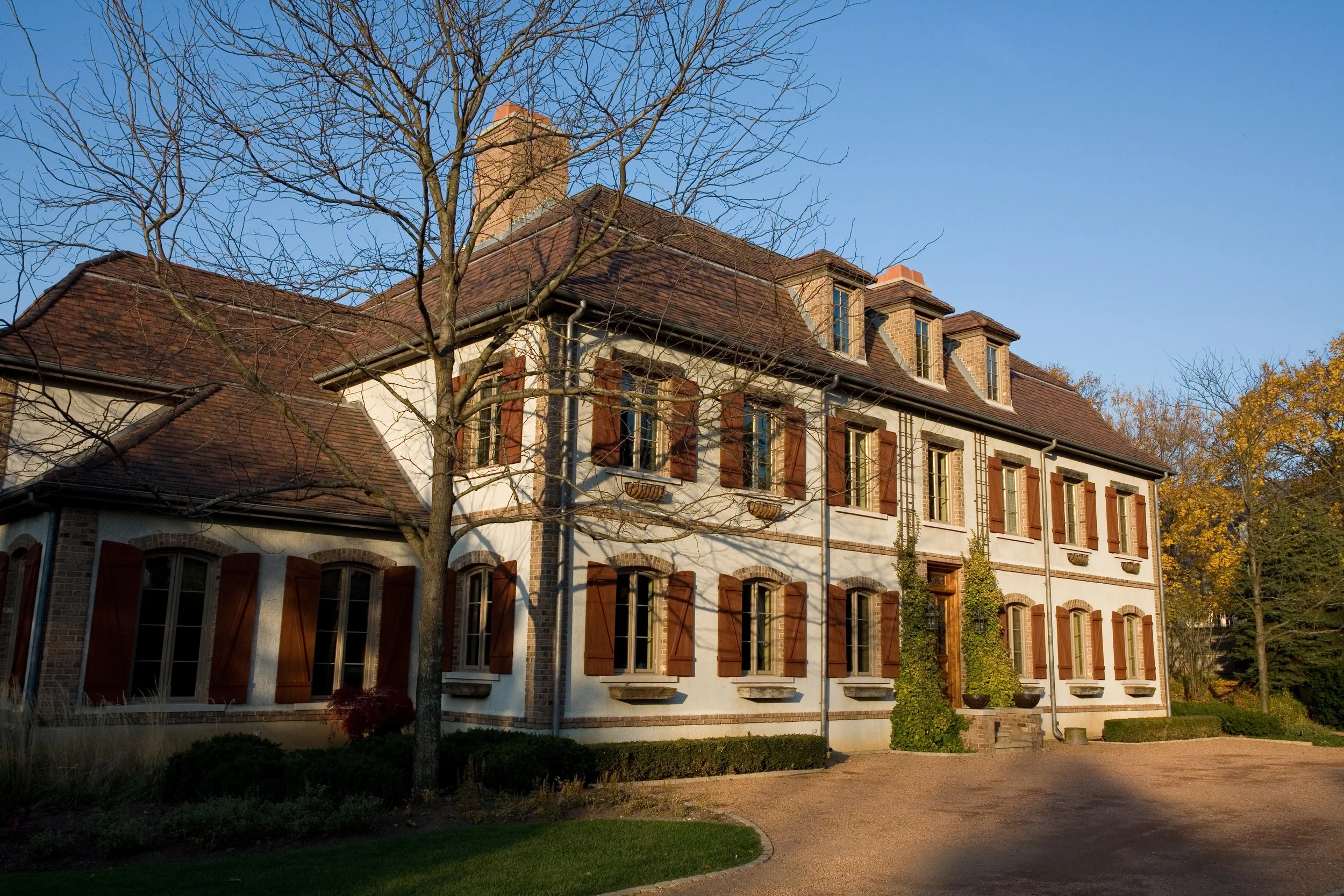This single family home in East Lake Forest, Illinois derives its inspiration from the client’s travels through the French countryside and the manor homes which dotted the landscape. This residence effortlessly integrates natural materials and textures of brick, true stucco, stone, clay tile roof, and reclaimed barn wood creating a sense of timelessness inherent to this architectural style. This home’s understated elegance is based on simple proportions and a generous use of the above stated materials.